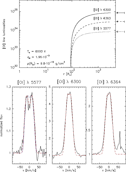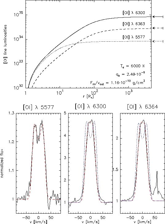 simultaneous line luminosity and line profile calculations for the [OI] lines.