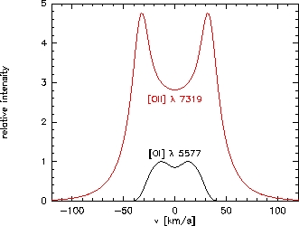 profile of the λ5577 line, but fails to fit the profiles of the λ6300 and