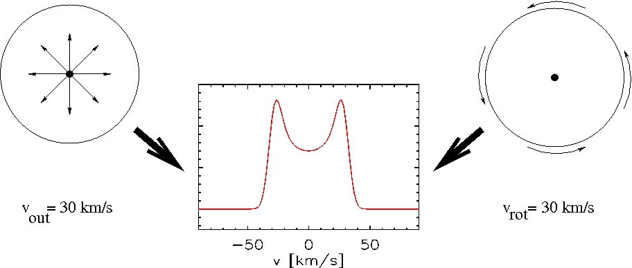 velocity of 30 km/s. Both scenarios deliver the identical line profile.