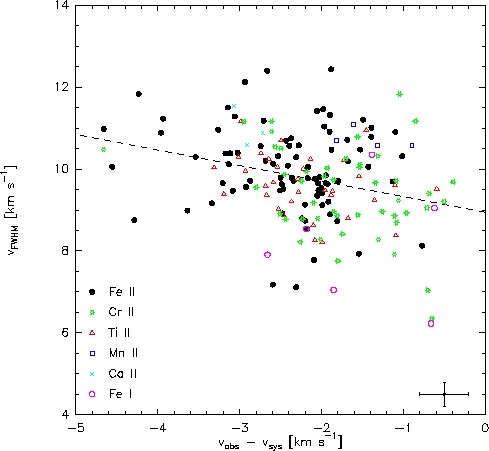 with those of the FeI lines. This trend would be logical, because we expect an outwards decreasing